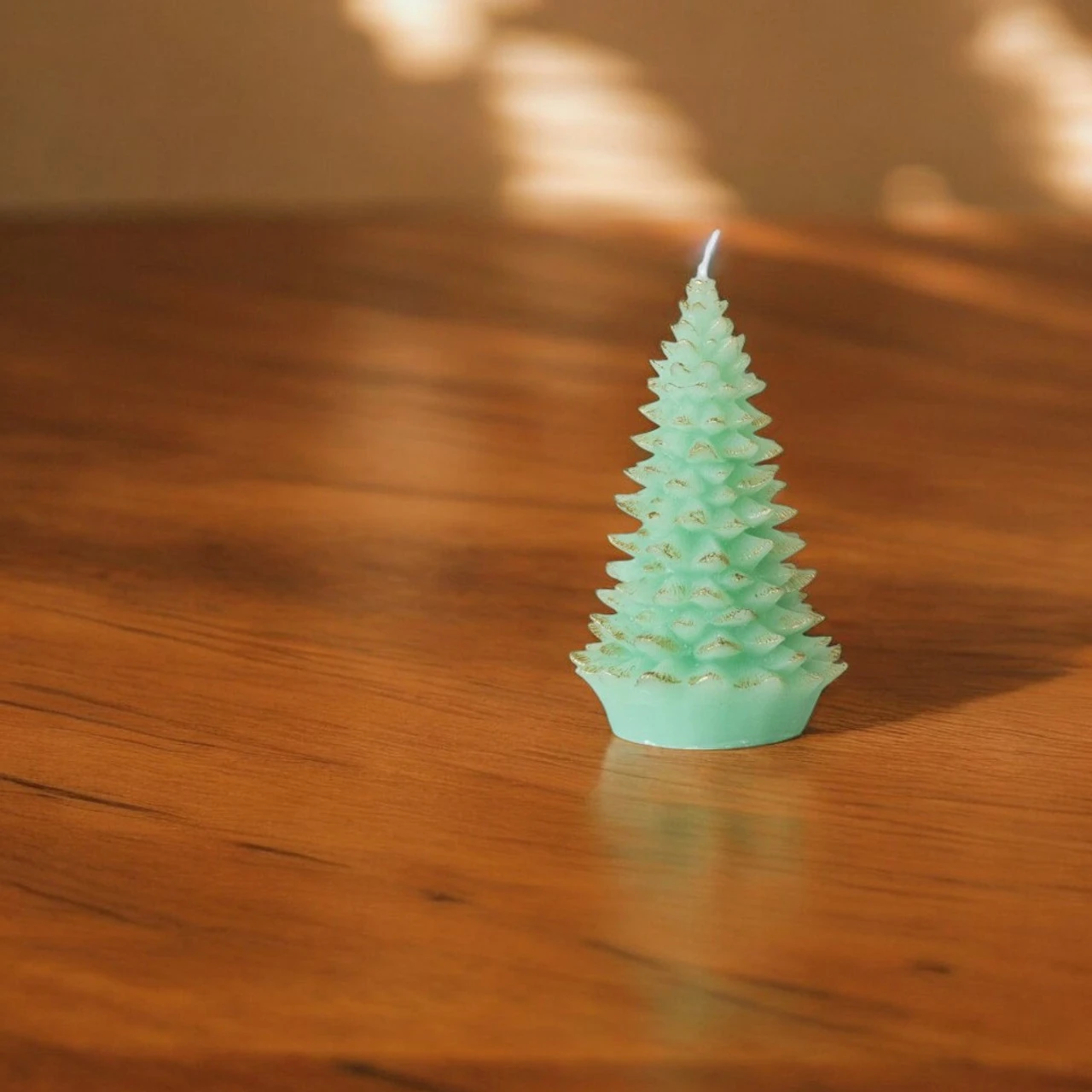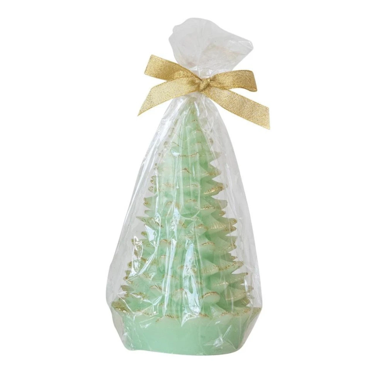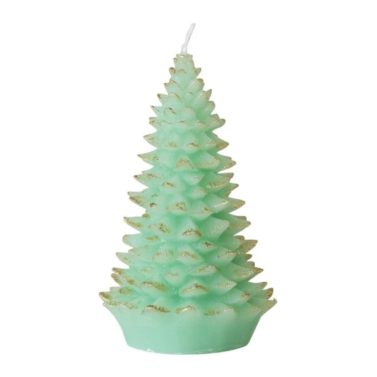 Brighten up your holiday decor with this charming Unscented Tree Shaped Candle in a refreshing mint color! Standing 7 inches tall, this festive candle features delicate gold-tipped branches, adding an elegant touch to any room.