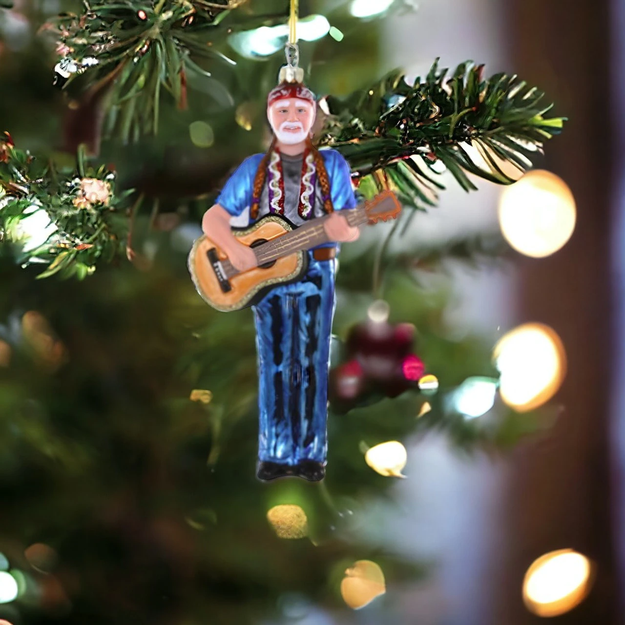 Strumming into the holiday spirit, Cody Foster’s Willie Nelson Ornament brings a touch of country charm to your Christmas tree. This glass figure, with its iconic braids and guitar, captures Willie’s legendary presence, offering fans a festive way to honor the Red Headed Stranger.
