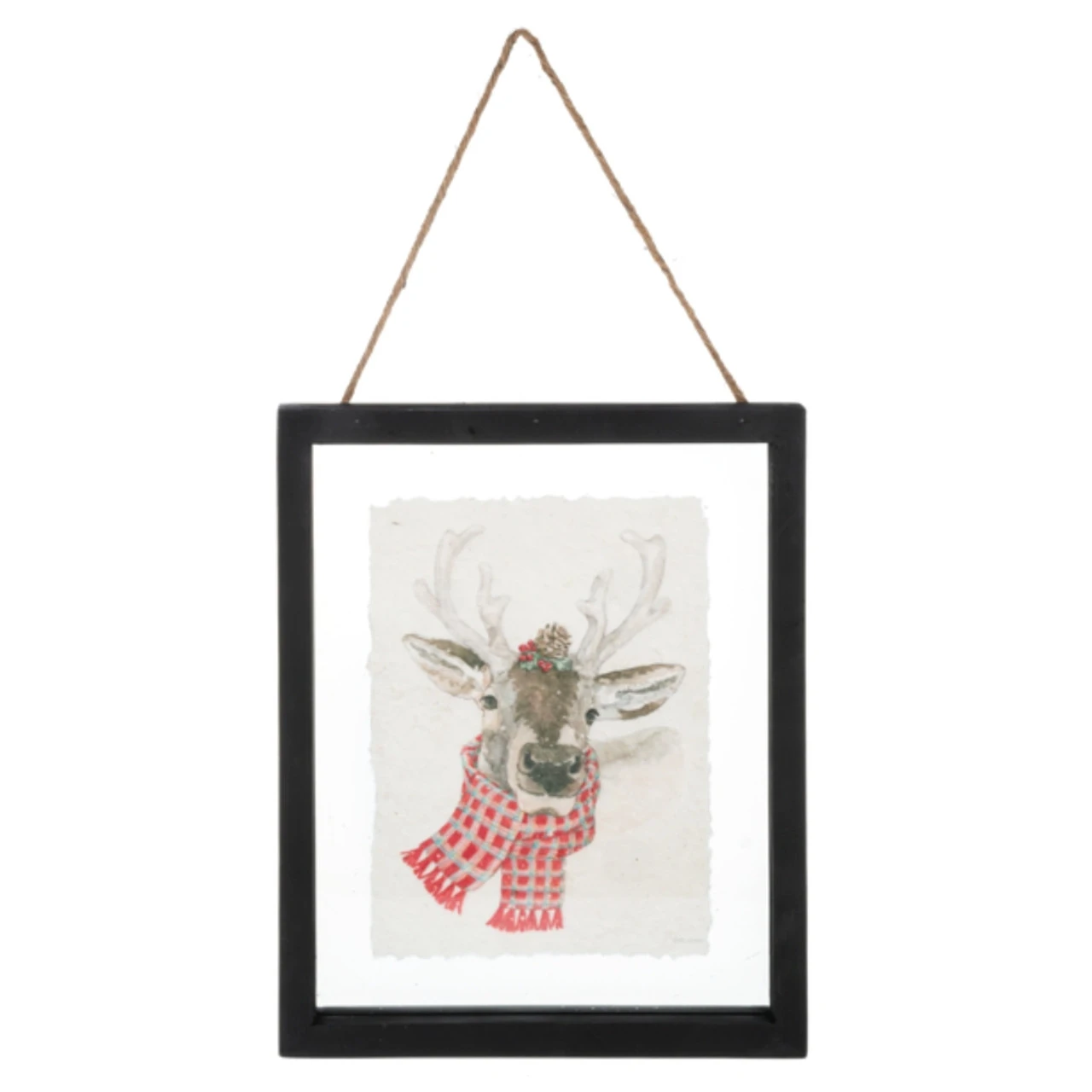 Crafted from glass, wood, and paper, the framed design measures 11 inches tall and is ready to hang. Perfect for cabin style homes or nature lovers, this sweet deer will instantly warm up your walls for the season!