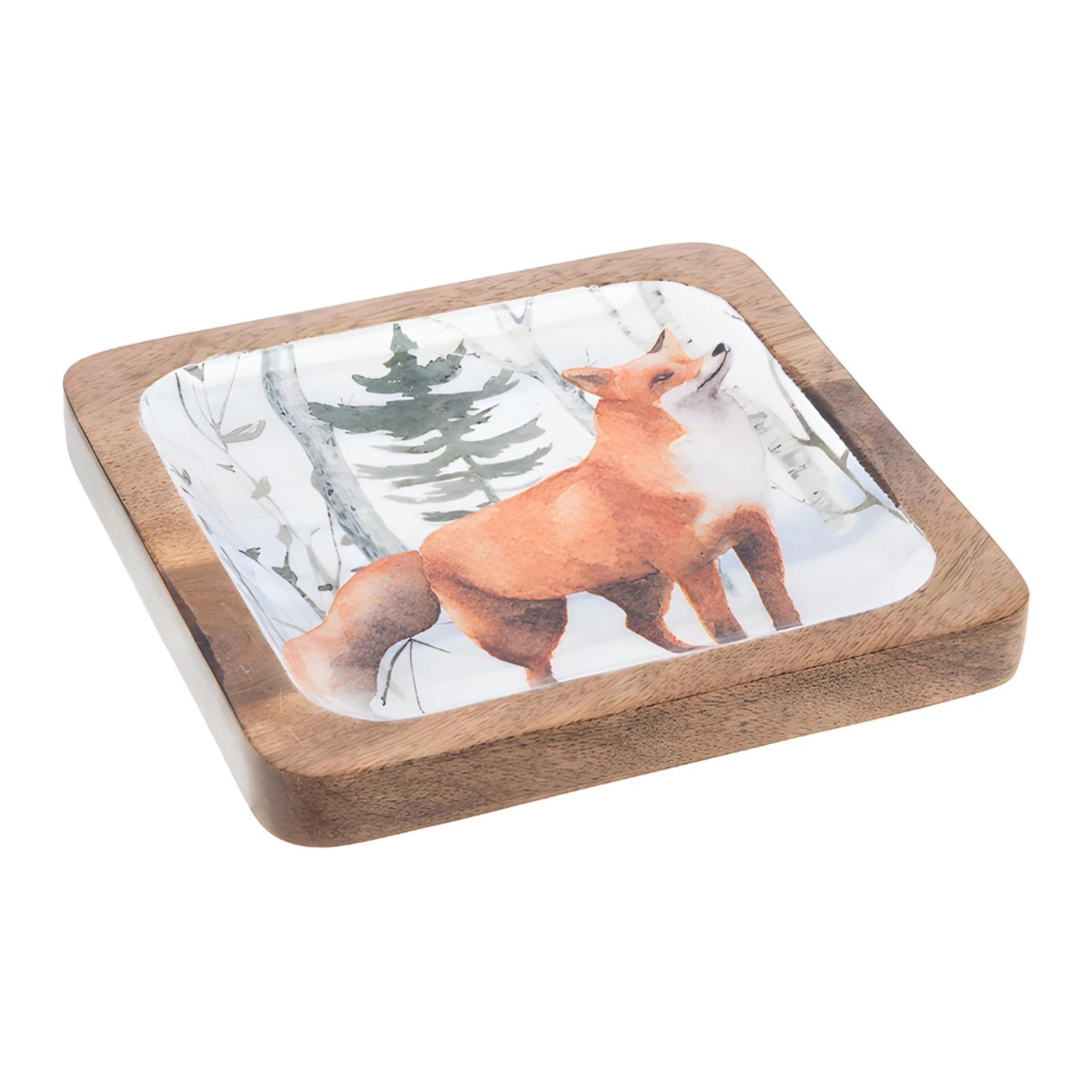 Add a dash of woodland whimsy with our Woodland Fox Trinket Tray! This 6-inch, food-safe mango wood tray features a beautifully painted fox standing among forest trees.
