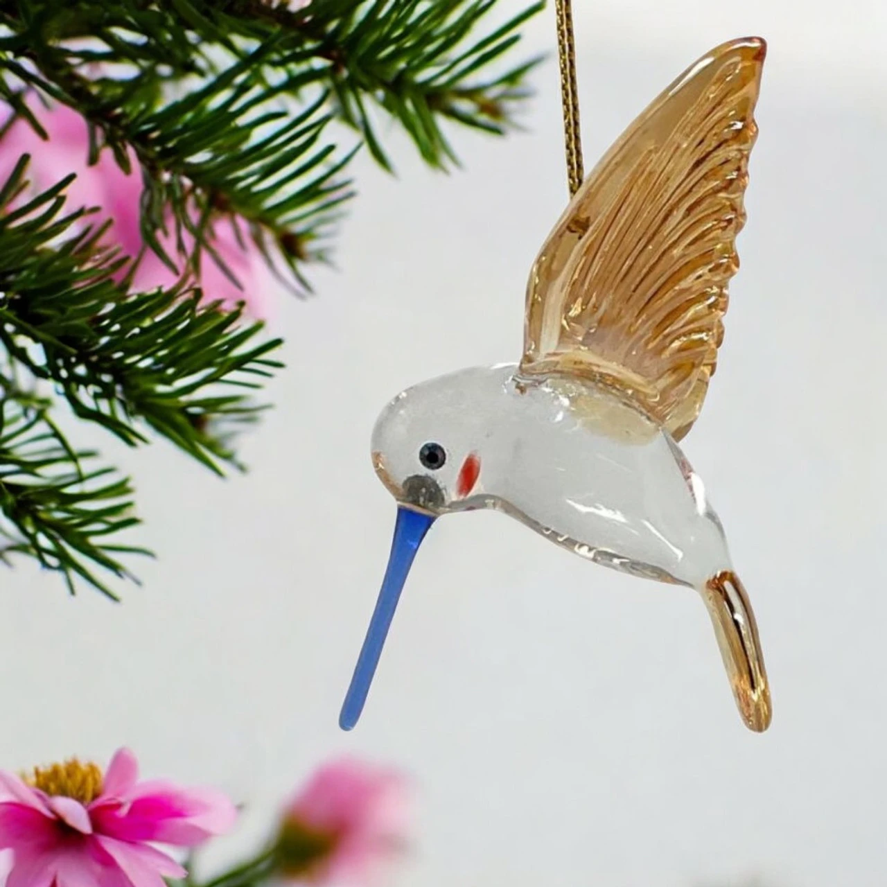 Bring a splash of sunshine to your holiday decor with the Egyptian Museum Yellow Hummingbird Ornament. This exquisite ornament features a delicate hummingbird with vibrant yellow wings and intricate glass details, capturing the beauty and grace of this beloved bird.