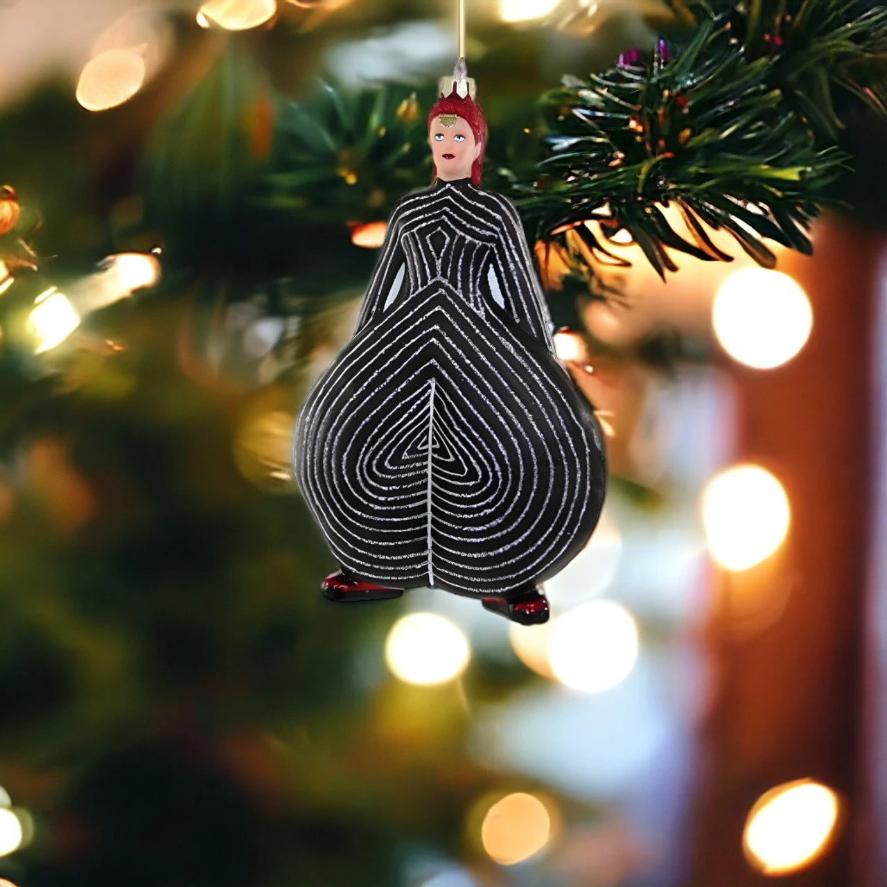 Ignite your festive spirit with Cody Foster’s ‘Ziggy Stardust’ Icon Ornament. Dressed in the signature black-and-white jumpsuit, this ornament pays tribute to the legendary David Bowie.